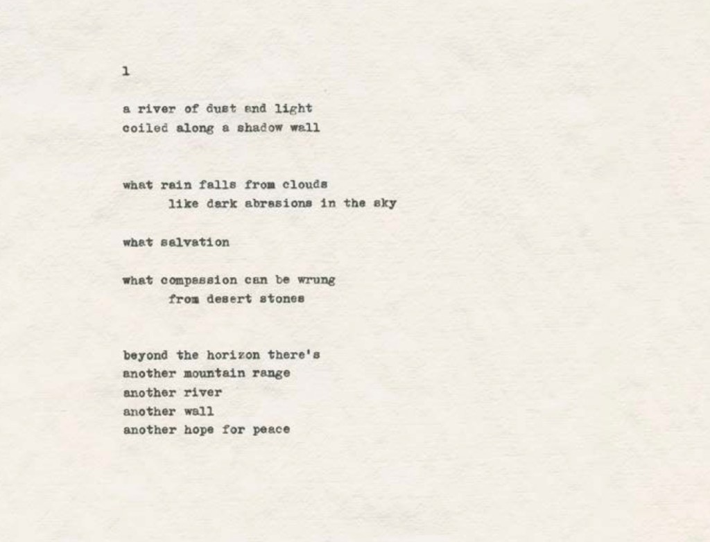 Rivers of Dust and Light, a photography-poetry project on the US-Mexico border wall in collaboration with Bryan Dickie, will be published in spring 2026.